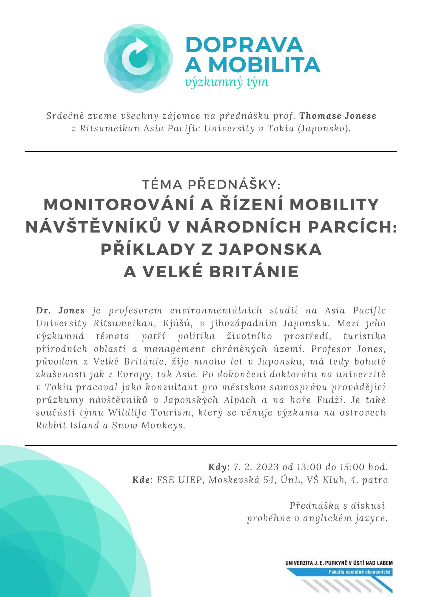 Téma přednášky: Monitorování a řízení mobility návštěvníků v národních parcích: Příklady z Japonska a Velké Británie